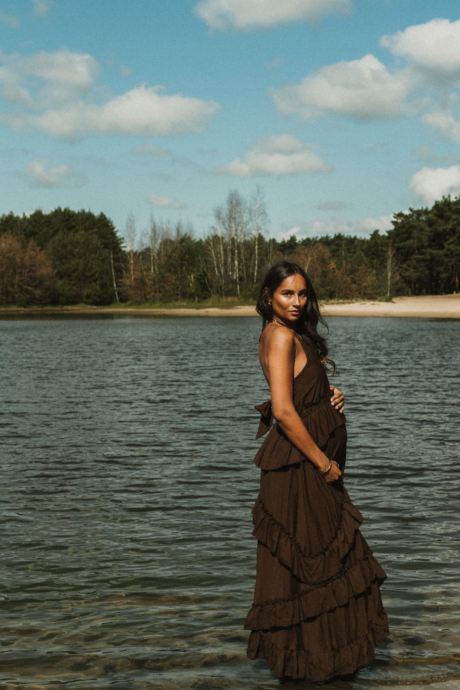 No words needed voor deze beauty van een maxi jurk! Ruffles, práchtige rug details, een de pasvorm is WOW! Of je nu zwanger bent of niet, deze jurk past elke vrouw. Steel de show in deze heerlijke luchtige maxi dress deze zomer!
