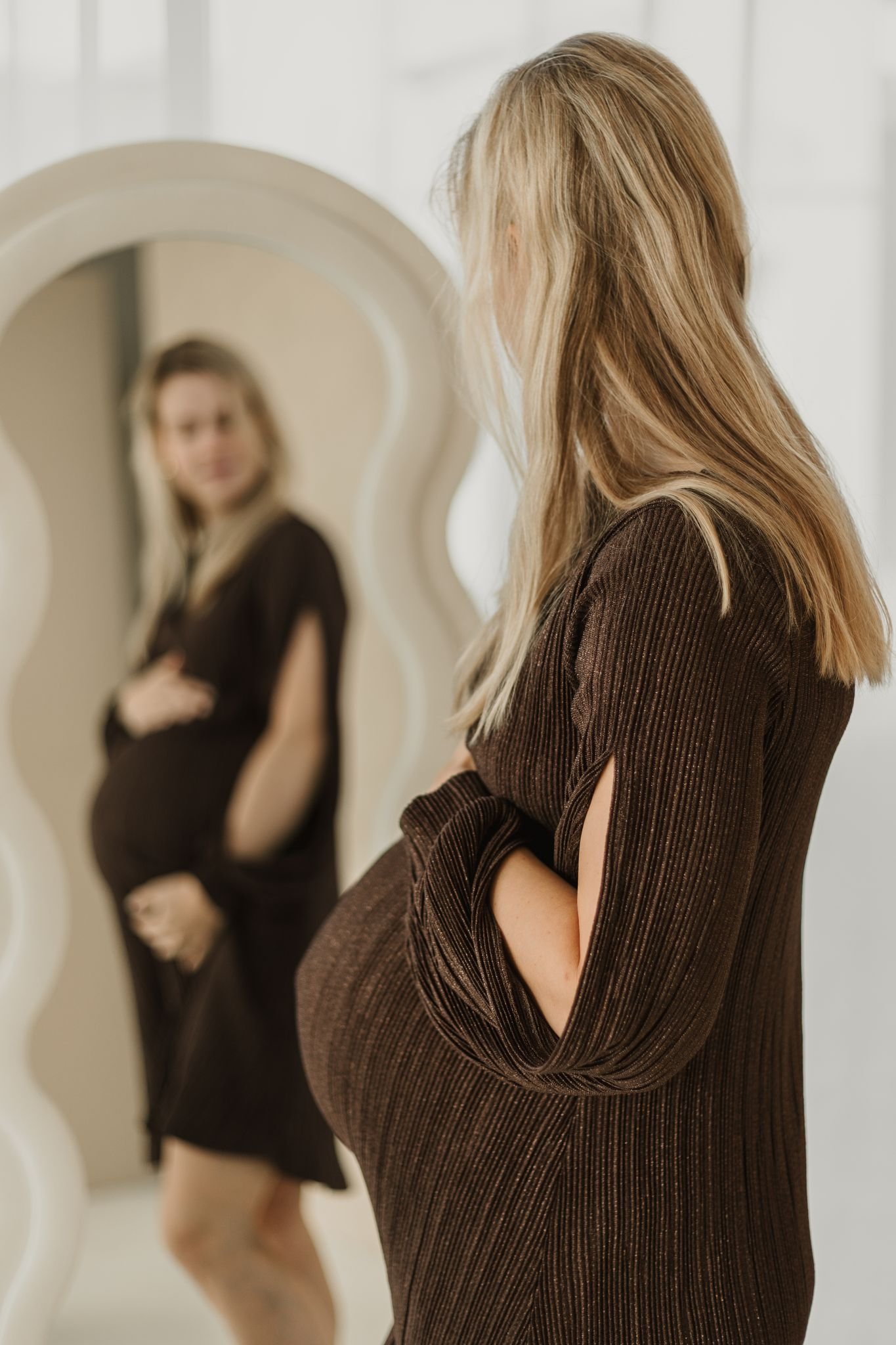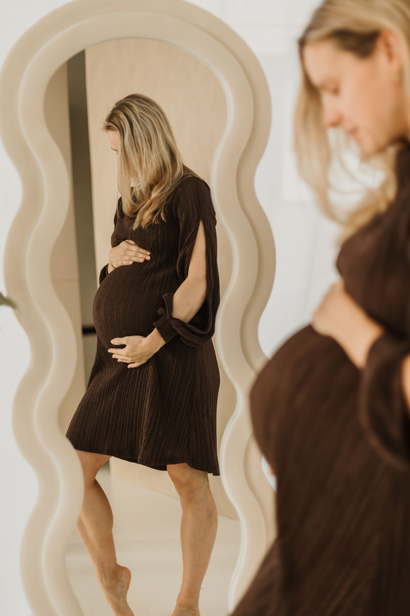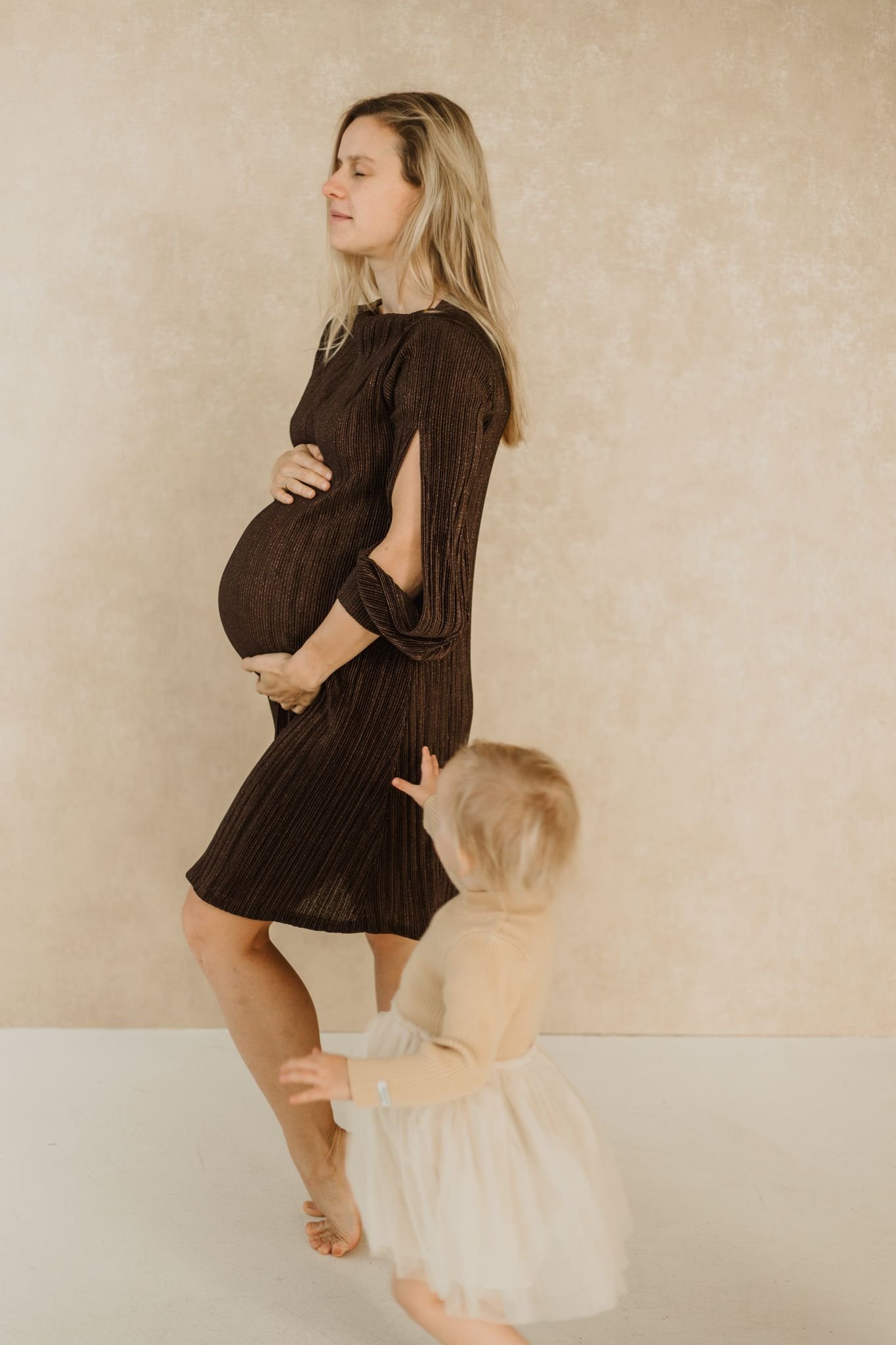 Het jurkje is prachtig mét babybelly, hij valt mooi over de buik maar ook zeker zonder. Dan is hij namelijk was losvallender, love it!